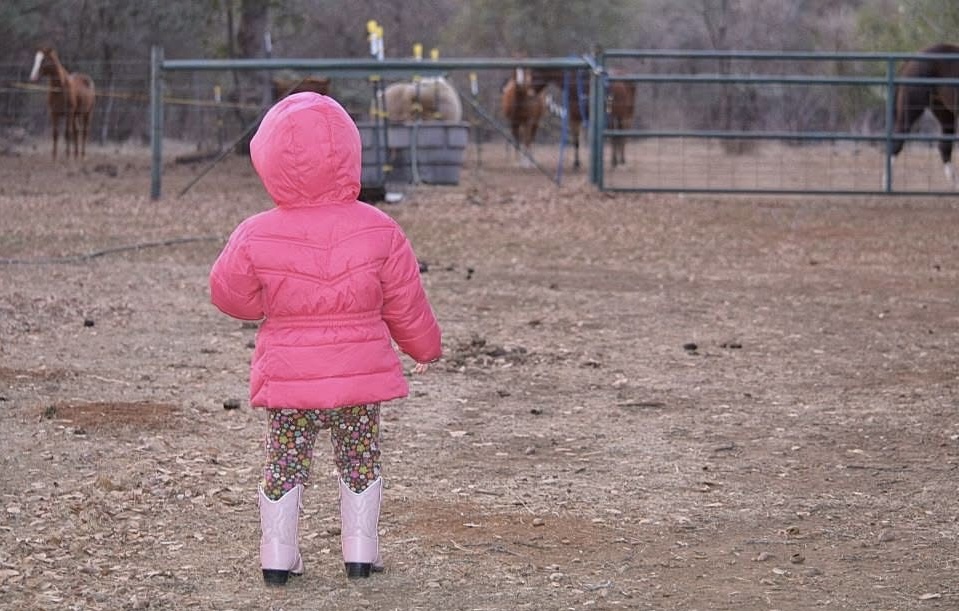 I took this photo today, twelve years ago. It’s my daughter on her way to help me feed the horses early one morning. At one time we had 17 (!) rescue horses, her dad collected them.. and we cared for them. It was a lot of work, but I am grateful for the experience. A different life.