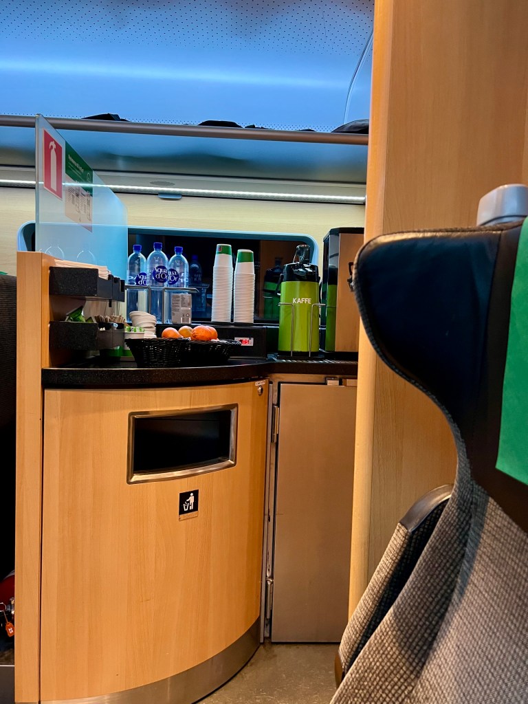 To rewind to the beginning, I spent a couple days in Stockholm this week attending a seminar. On Friday morning I found out that the train I was supposed to take home in the evening had some track issues on a section of the way, they were going to replace that section with buses, and take a slightly different way, delaying me hours. Not so fun. Sometimes they solve train issues during the day and I thought to myself that the only thing I could do was to wait and see, the trip was still ten hours away when I found out. However, they could not resolve the issue during the day and I prepared myself for the longer journey. ..When I all of a sudden remember that there is a more expensive, high-speed train that takes a different route. That train was going to leave in ten minutes. I called the train company while walking quickly to the platform the high-speed train was going to departure from. I was lucky and got to talk to an operator after less than a minute, that never happened before..he switched out my cheap student tickets on the delayed train to first class tickets on the high-speed train at no extra cost! I boarded the train two minutes before it took off, and came home very early. The seats where so comfortable and then there was the extra bonus of free coffee and tea. There was a restaurant on board as well. I felt so lucky!